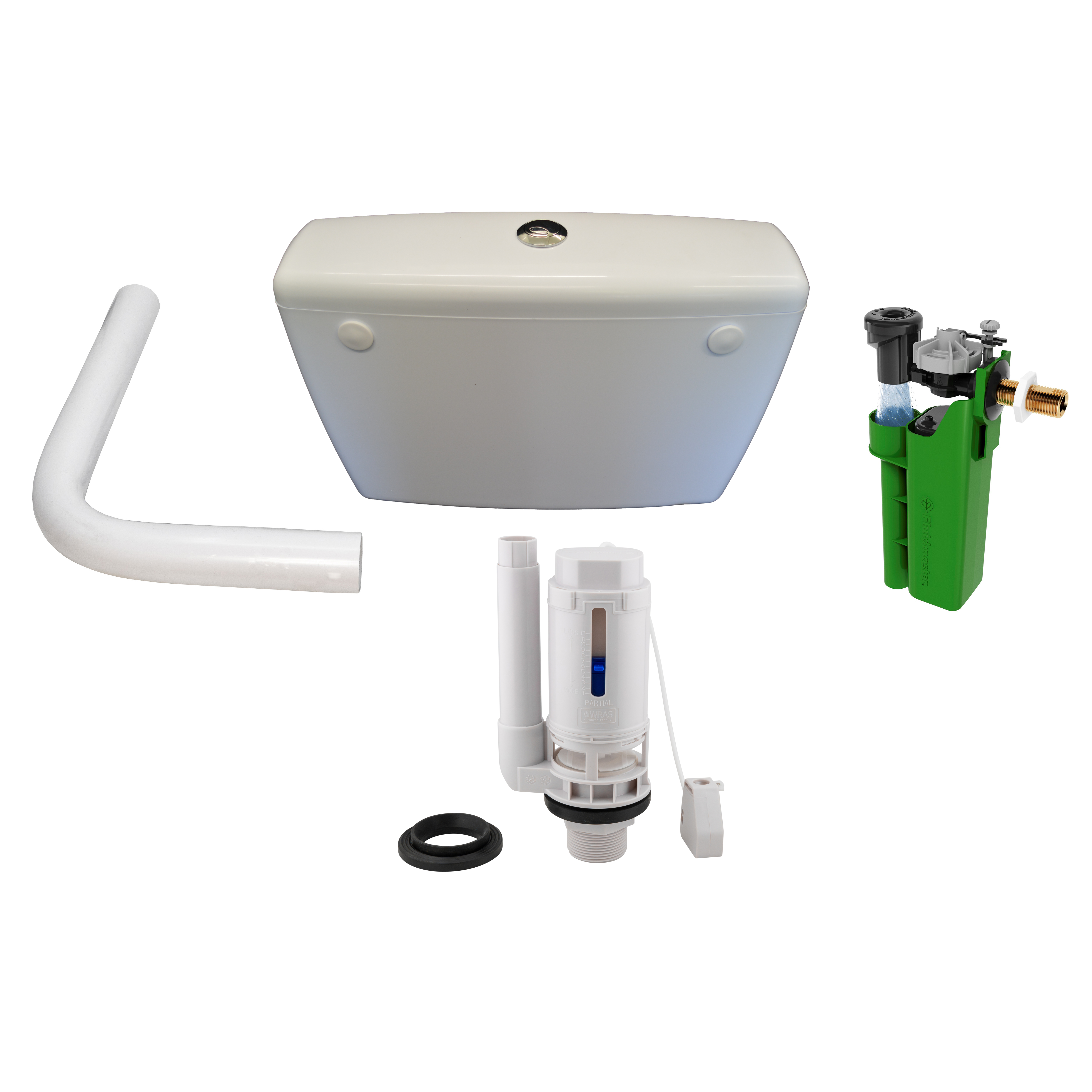 This exposed cistern offers dual flush functionality and the water saving delay-fill valve can save up to 1L with every flush. A great choice for caravans and small spaces. This model features top activation via cable.
